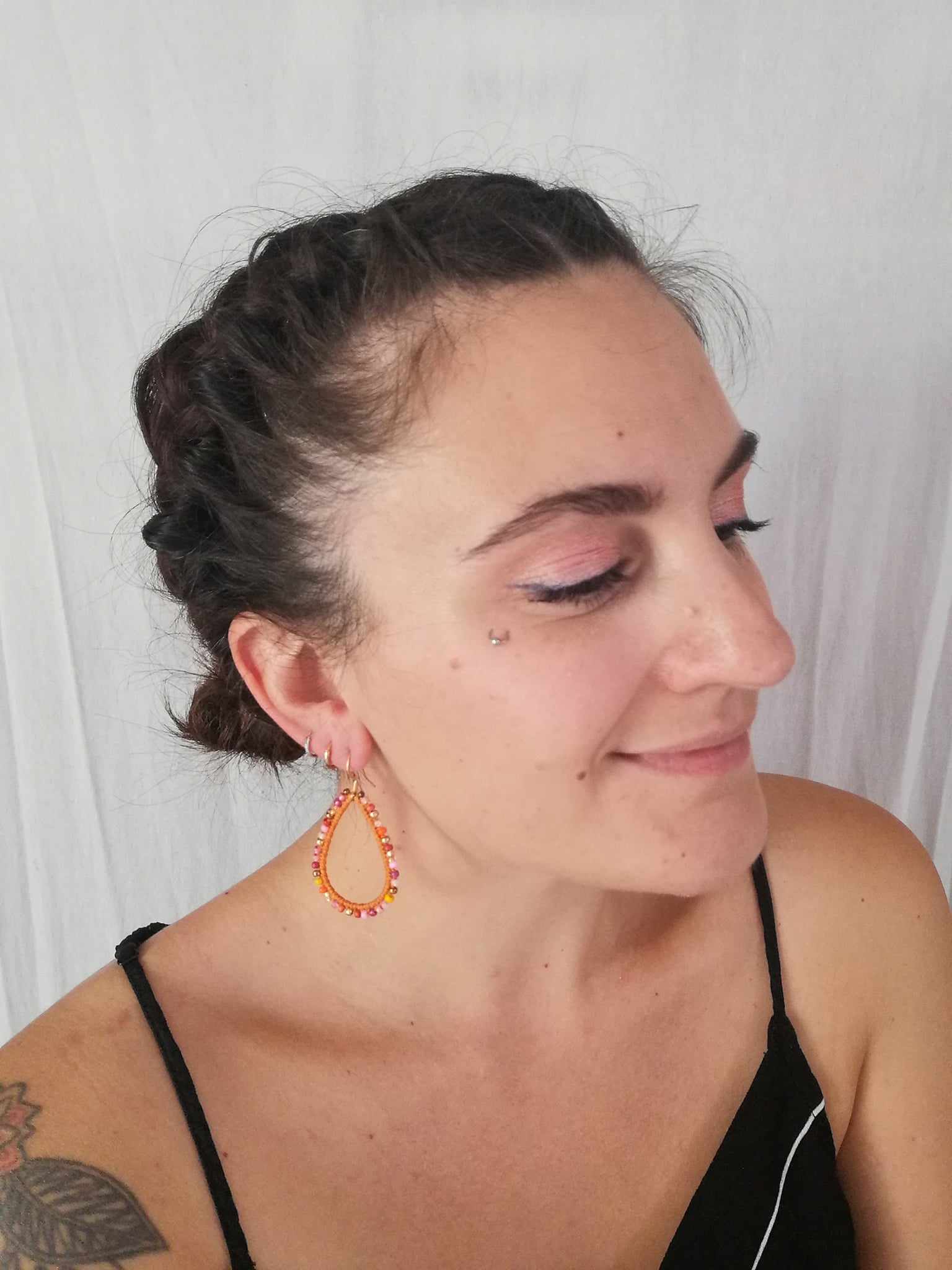 Tissées avec la technique du micro macramé avec Fils polyester orange kaki